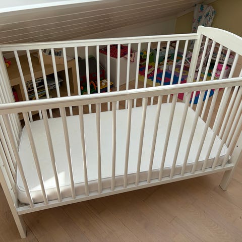Madrassen er 120x60 og er brukt bare 3 måneder da barnet flyttet over til juniorseng tidligere enn forventet.
