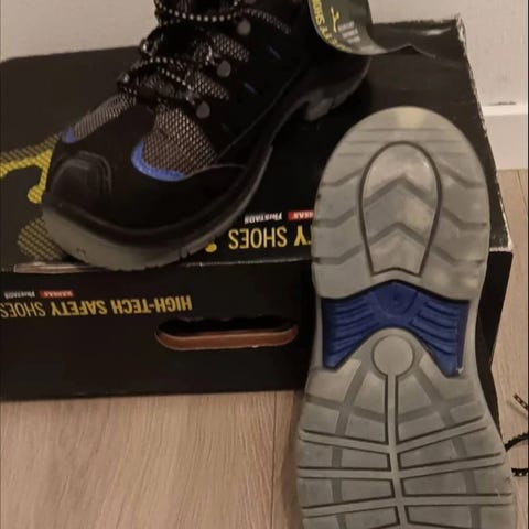 Selger 1 par med ubrukte BLUEWEAR vernesko, i str 37 for kr 150,- Det kan følge med en gul vest og en hjelm gratis om dette er ønskelig.