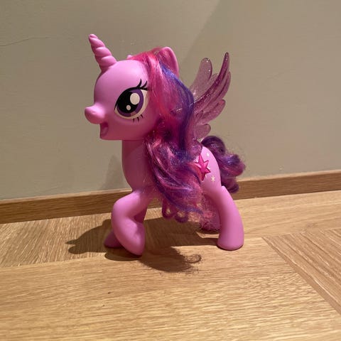 Selger min Twilight Sparkle fra My Little Pony. Den har mistet en vinge, men det betyr ikke noe. Hun synger noen forskjellige sanger når man trykker på søtmerket hennes.