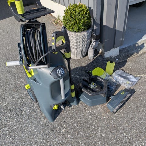 Følger med reparasjonskit, skumpistol og vaskesåper utover standard kit