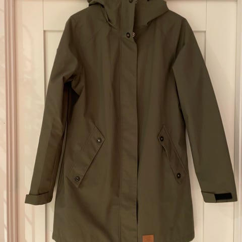 Tynn, vanntett allværsjakke i Str.40 med innsvinget fasong. Normal i størrelsen. Brukt et par ganger, fremstår som ny.