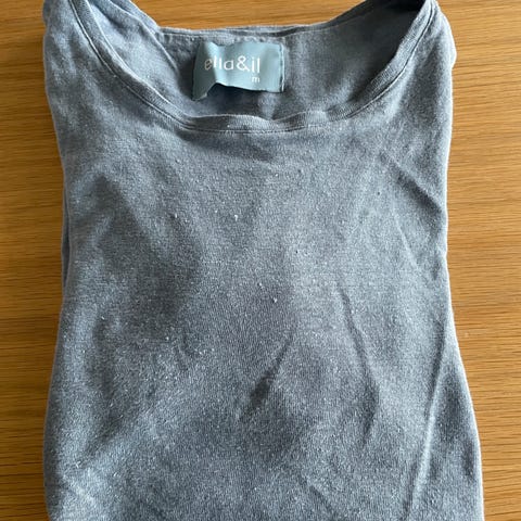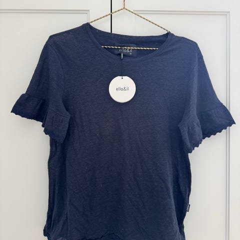 Oline lin-T-skjorte er laget av 100% lin. Den er inspirert av en av bestselgerene fra ella&il, Jane Linen-tee. T-skjorten har rett form og rund hals, med bretter i endene av ermene