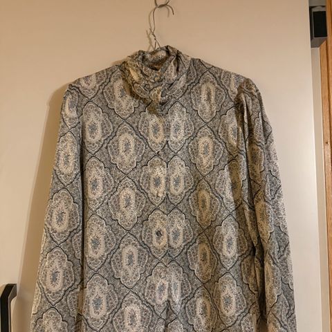 Skjorten har ikke merkelapp men dette er deilig silkestoff.