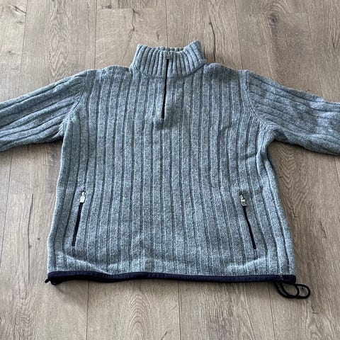 100% merinoull. Kan brukes som genser eller tunika. Flott blåfarge.