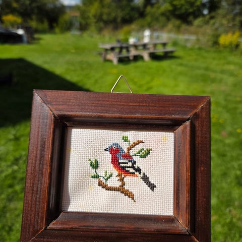 3 store, innrammede vintage broderibilder med 3D effekt selges SAMLET kr. 699,- + frakt