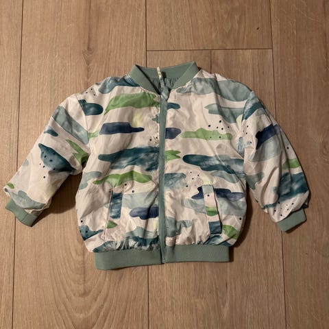 Vendbar høst-/vår jakke. Brukt et par ganger av ett barn. Str 80