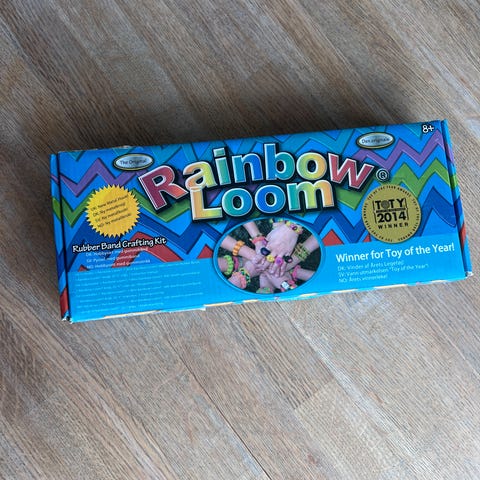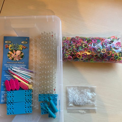 Rainbow loom startsett og masse ekstra gummibånd i Rappala-fiskekrok organisator