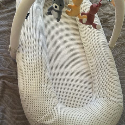 Praktisk babynest med avtagbar lekebøyle. Kan også forlenges i fotenden. Pent brukt av én baby. Nypris 800 kr - selges nå for 150 kr.