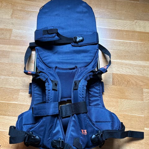Minimeis bæremeis i blå farge. Designet for å gi komfortabel bæring av barn. Lettvektsmateriale med justerbare stropper for optimal passform. Praktisk for turer og daglige aktiviteter.