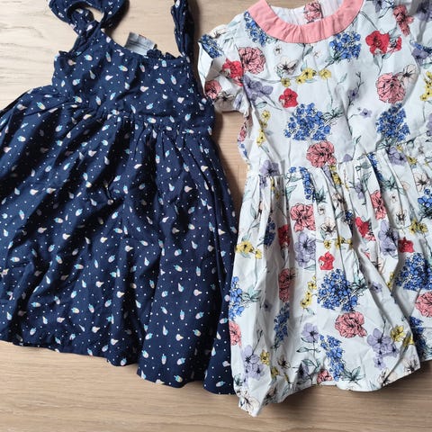 2 Newbie sommerkjoler, begge str 98, selges. Merk: den ene har liten flekk på blondekanten, se bilde.