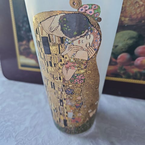Søkeord: Gustav Klimt, Der Kuss, Goebel, Artis Orbis, krystall, vase, telysholder, lyslykt, dekorasjon, Tilbords, kunstglass, ekte gull, gaveidé, samleobjekt, Klimt vase, kysset