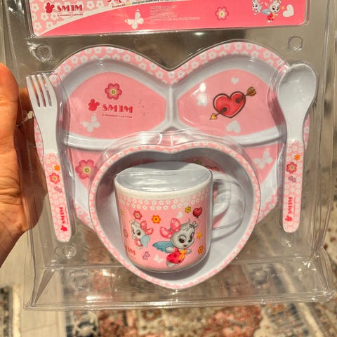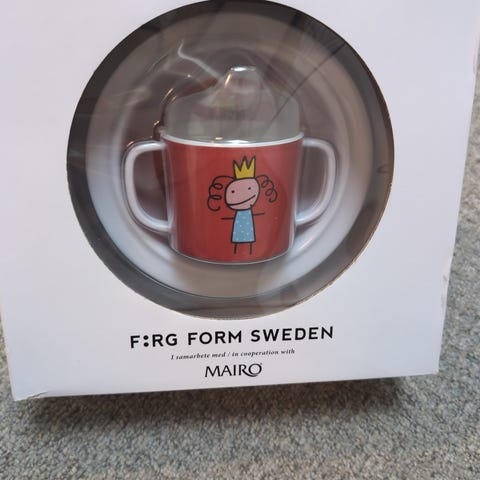 Vintage barneservise fra Kahla bestående av asjett, tallerken og krus selges samlet. Vintage barneservise fra Kahla selges rimelig. Asjetten er 19,3 cm i diameter. Den dype asjetten er 18,9 cm i diameter. Pent brukt og ingen skader.