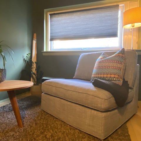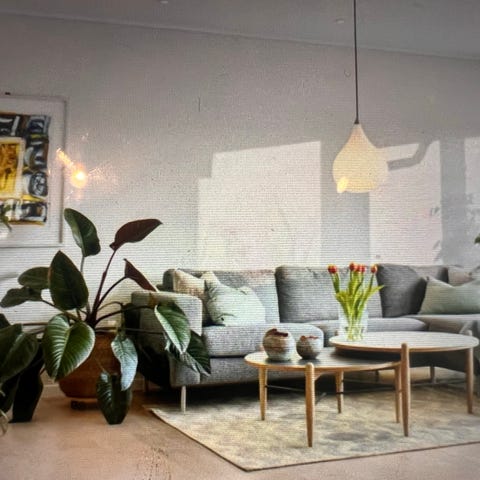 Sofa som har stått i pendlerleilighet og er derfor svært lite brukt. Ser ut som da den ble kjøpt i 2021. Har kvittering. Fargen er et sted mellom blå, turkis og grå. Fått mange komplimenter for den. Tekstilen er myk og føles som ull. Lett å montere/demontere.