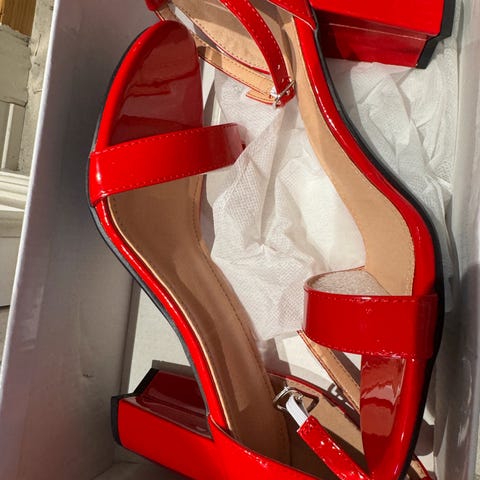 Selger et par helt nye, ubrukte sandaler fra Topshop – fortsatt i perfekt stand. Elegant design med krokodillemønstret finish og høy hæl som gir et sofistikert preg til ethvert antrekk.