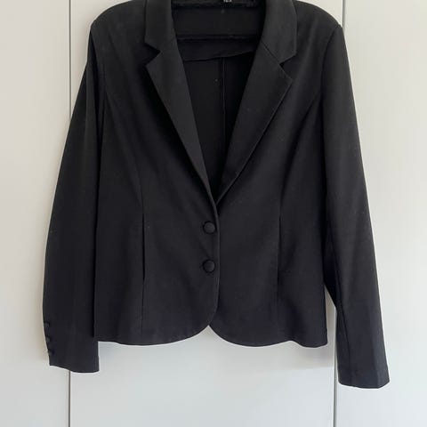 Svart blazer med lekker zebramønstret fòr og dekorativ grønn kant.