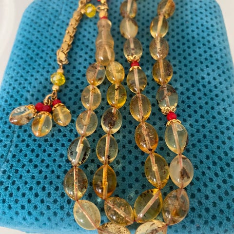 Vakker lys gul rosenkrans laget av ekte baltisk rav. Tasbeeh er håndskåret og polert fra et helt stykke naturlig rav (succinite). Inneholder inneslutninger og små naturlige ufullkommenheter. Består alle tester for autentisitet. Den er ikke kjemisk behandlet eller presset. Alle mål og vekt finner du på bildene. For mer informasjon, vennligst skriv til meg. Skambud besvares ikke! Takk!