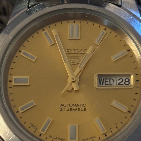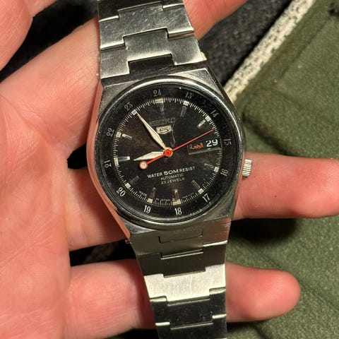 En noe sliten Seiko 5 Automatic fra tidligst 1982. Caliber 7019A.