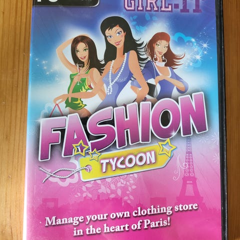 Girl-It Fashion Tycoon PC Spill. Spill der du kan administrere din egen klesbutikk i hjertet av Paris. Inkluderer oppgaver som å designe klær og håndtere butikkdrift. Passer for PC-plattform.mangler manual.