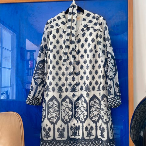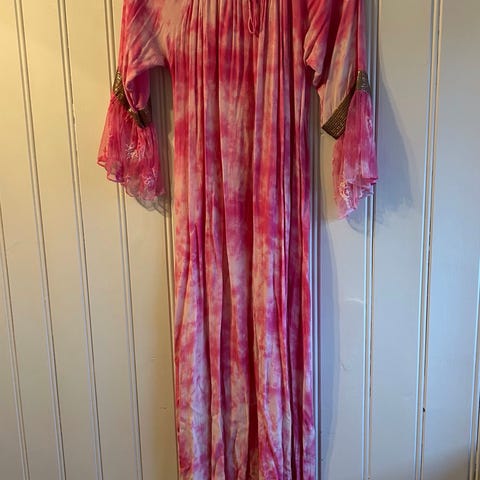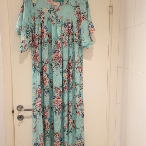 Romslig i fasongen, kan også passe som gravidkjole.