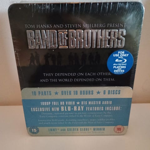 Komplett Blu-ray samleboks av Band of Brothers i metallboks. Inneholder alle 10 episoder + bonusmateriale. Disker i god stand. Boksen har noe slitasje. Sendes eller hentes.
