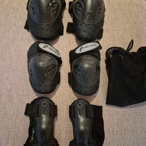 Kne/albuebeskyttere er i størrelse medium - over 50 kg.