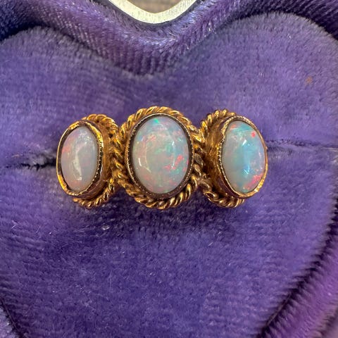 Claddagh 9ct gull ring med naturlig opal i str 7