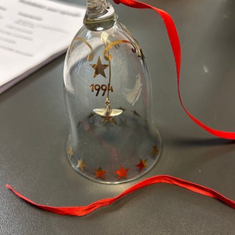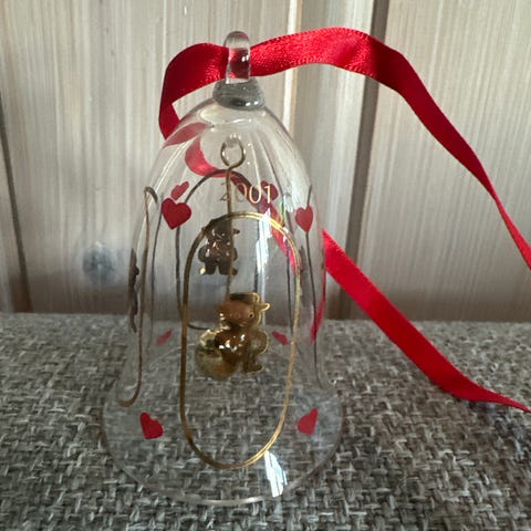 Søkeord: julenisse julepynt juleservise glassklokke glassbjelle juleklokke julebjelle