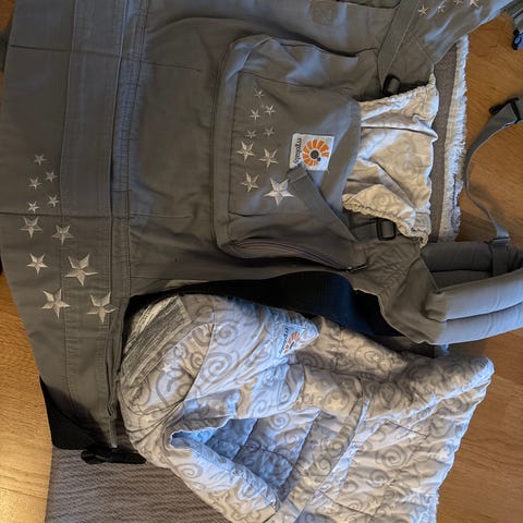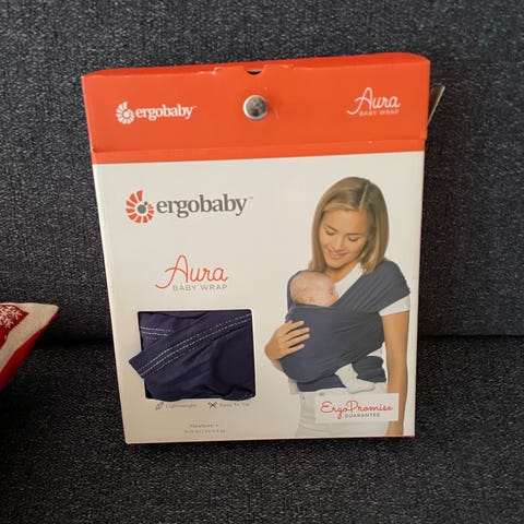 Ergobaby Aura bæresele. Veldig enkel å bruke. Fra nyfødt til 12 måneder. For mer informasjon: https://ergobaby.com/the-aura-baby-wrap