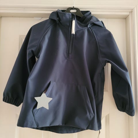 Nydelig anorakk, vind- og vannavstøtende, til jente eller gutt opptil 4 år. Min brukte den mellom 3-4 års alder (men ikke som yttertøy i barnehagen).