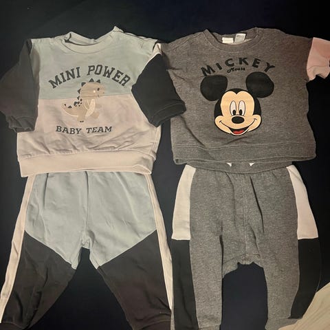 👕 3 komplette sett (bl.a. Hummel tracksuit, Minnie Mouse sommersett, veloursett)