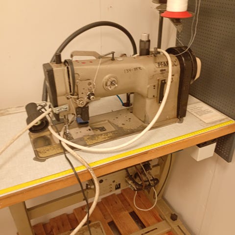 Pent brukt, solid og stødig Bernina 950 industrimaskin med bord.