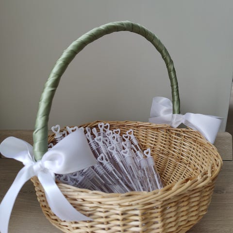 Søte kurver brukt av brudepiker i kirken. Hvite silkeroseblader følger også med.