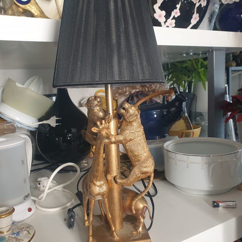 Eldre bordlampe i kopper og tre fra ca 1900/20tallet