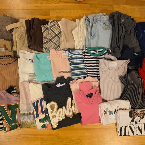 Klærne er i noe ulik størrelse (XS, S, M), men passer til jente 12 til 14 år som liker litt oversized.