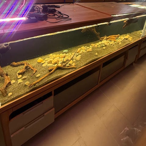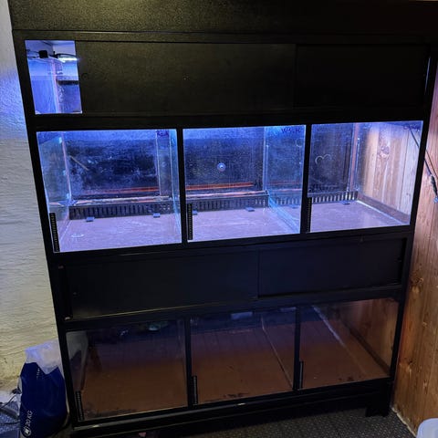 Har også en reol med 3x80liter og mange småe akvarium alt fra 20l-60l av forskjellige slag som står på lagring, alt kommer fra tidligere akvariums butikker en god del er i fult bruk å ikke planer om å ta ned.