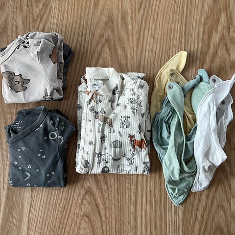 Klespakke fra Lindex med body og matchende bukse/tights og en nattdrakt