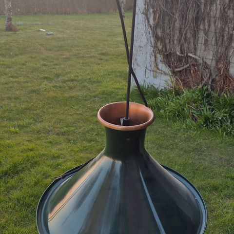 Lampen er laget av syrebehandlet kobber med en vakker patina, og har detaljer i blåst gult glass.
