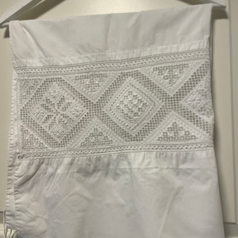Selger helt ny hvit stretch bukse i ankellengde med hullbroderi nederst fra Bonprix.