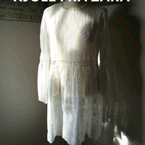 Selger helt ny tynt fôret hvit kjole i rett modell med vakre broderte hjerter og hullbroderi.