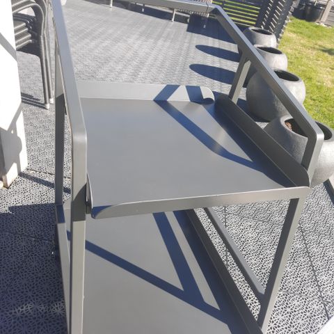 Peace bord fra Brafab selges. Diameter: 110cm. Høyde 73cm. Stilig design. En bordplate i aluminium med inndelte linjer gir en fin kontrast til den runde formen. Bordet har en solid midtsøyle som betyr at ingen trenger å sitte ved et bordben. Justerbare føtter er inkludert for å avverge eventuelle ujevnheter i bakken. Brukt som utstilling i showroom, ikke butikk. Aldri brukt privat. Bordet har alltid blitt oppbevart innendørs. Selges grunnet plassmangel. Kan hentes i Moss.
