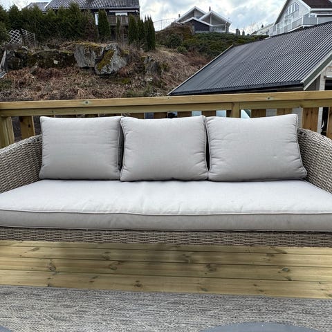 Pembroke 2-seter fra Brafab selges. Mål: 139x90x77cm. Sittehøyde 47cm. Pembroke har sortlakkert aluminium ramme og er flettet med polyrotting. Puten er i værbestandig olefin stoff. Brukt som utstilling i showroom, ikke butikk. Aldri brukt privat. 2-seteren har alltid blitt oppbevart innendørs. Selges grunnet plassmangel. Kan hentes i Moss.