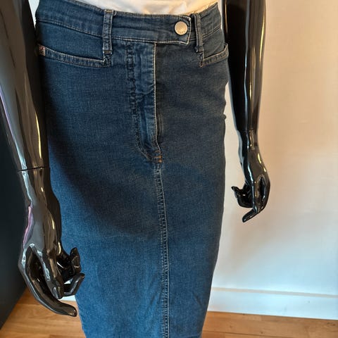 Utrolig kult jeans skjørt fra slutten av 90-tallet! Total lengde 34 cm. Ca 34 cm i livet og 44 cm på det bredeste over hofter.