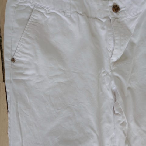 Meget pent brukt og flott hvit United Colors of benetton bukse str 38 / M. 98% bomull og 2 % elastan. Noe stretch i buksene. 40 grader maskinvask, kan tørketromles og strykes.