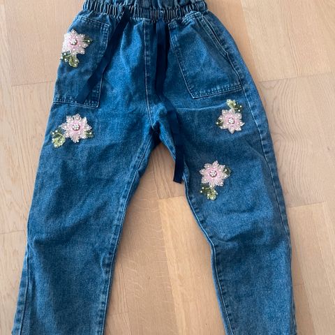 Svart jeans bukse som er high waist og wide leg. Den passer fint hvis du bruker M, kan også passe S, da str. er 38. Det er litt stretch i den.