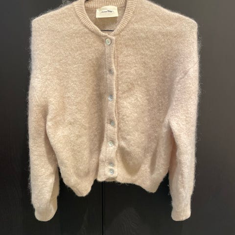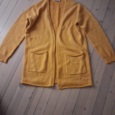 American vintage cardigan i oker brun sennepsbrun farge. Har litt røff strikk. 5 knapper. 22% mohair og 22% alpaca superfine. Høst 🍂