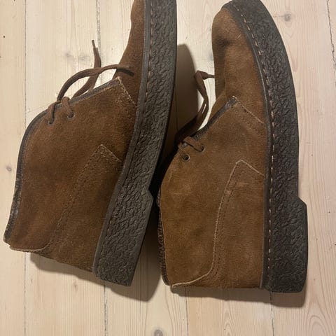 Klassisk ørkendesign med crepesåle, snøring og håndlaget finish. Kun brukt en gang. Fremstår som nesten nye. Selges da de er litt for trang for meg (jeg ligger mellom 39-40 i størrelsen og de her er en litt trang 39)