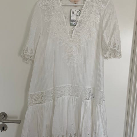 Hvit kjole med sorte prikker, helt ny i str XS/S. Passer flott med bÄde sandaler og hÞye hÊler