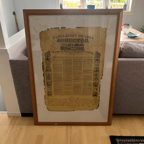 Norges grunnlov trykk fra ca år 1900 innrammet