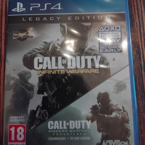 Activision Call of Duty Infinite Warfare Legacy Edition for Playstation 4. Inkluderer kampanje, multiplayer og zombies-modus. Spilleren kan oppleve intense kamper i ulike miljøer.coveret er litt ødelagt(se bilder)