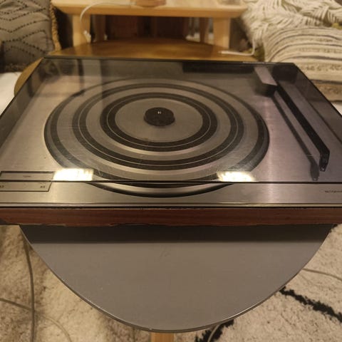 Bang & Olufsen platespiller Beogram 1203 selges. Den har stått noen år men fungerte sist den var i bruk. Det er stift på armen.